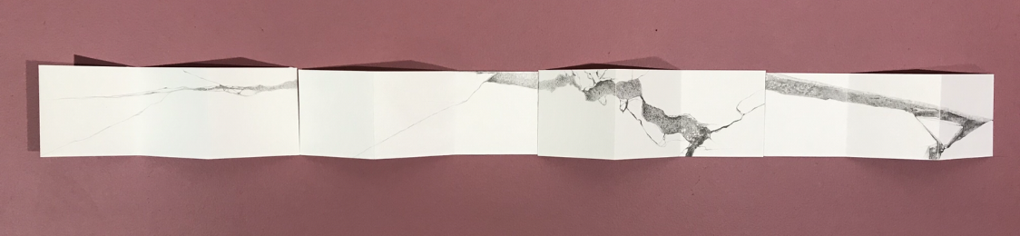 Removing the piece from the envelope revealed a complex composition in four panels. There is an interesting juxtaposition between the physical separation of the pieces and the imagery of the broken ice. The piece evokes environmental issues of global warming and raises questions about the crisis we are in.